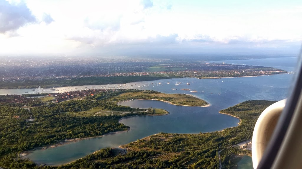 Habár a Nap lemenőben volt és sűrű felhőréteg tornyosult a sziget felett, azért Bali még így is lenyűgöző látványt nyújtott
