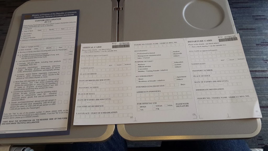 Közben megérkeztek a nyomtatványok, amiket a repülőút végéig ki kellett tölteni, később ezt kellett leadnunk az ellenőrző ponton. A kétféle nyomtatvány van: az egyik úgynevezett “immigration” a másik pedig egy vámnyilatkozat. Természetesen toll nem volt nálunk, de kértünk kölcsön az egyik stewardesstől.