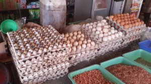 Az indonéz piacon a tyúktojáson kívül, népszerű a fürjtojás és a kacsatojás is. A kacsatojás számomra meglepő volt, mi itthon sohasem ettük meg, viszont itt jól átsütve, vagy megfőzve szívesen fogyasztott étel. Ráadásul jónéhány helyen snack-ként árulnak főtt tyúktojást. Kézhez kapod az előre megfőzött tojást, majd megpucolod és kész is. Igazi paleolit nasi:)Húsok-halak-tengergyümölcsei