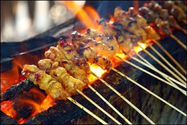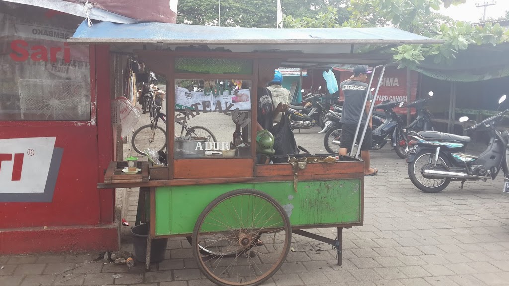 Itt a piacon nem a lángos és a sült hal menő, ha reggeliről van szó. A soto ayam mellett (ez egy indonéz csirkehús leves), árultak satét is. A saté egy indonéz étel, kicsi nyársra húzott húsdarabok, parázson sütve, mogyorós szósszal.