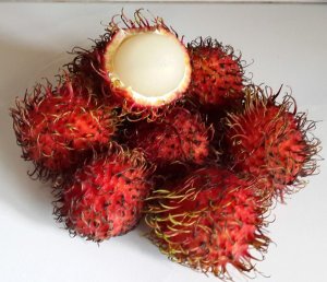 A kis “hajas babát”, a rambutánt…ez a kis szőrős csudaság a licsinek a rokona. Nemcsak küllemben, de ízben is hasonlít ismertebb rokonához. Igazi finomság!