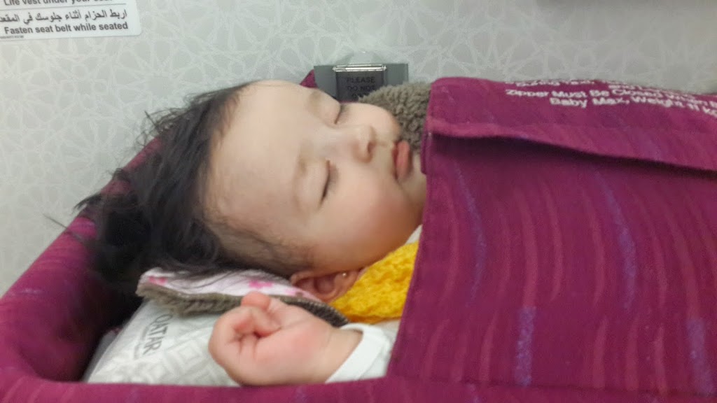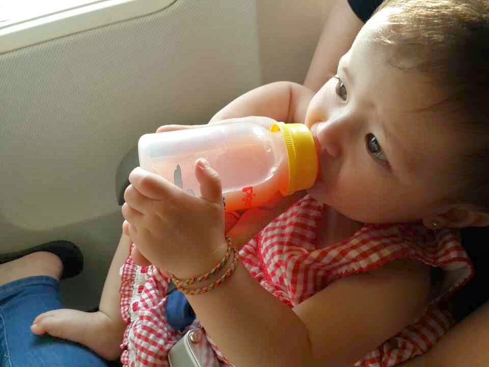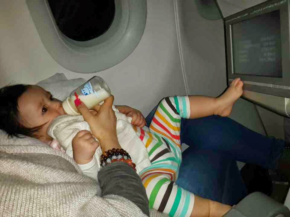 Szofi nem zavartatja magát a repülőn. Ha éhes, akkor eszik, ha esemény van a pelusban, akkor meg kicseréljük, mintha csak otthon lennénk, de itt ki lehet lesekedni az ablakon és a szülőkön kívül vannak mások is, akik körülrajongják. A légiutas kísérők, mindig több figyelmet szentelnek a gyerekeknek, így persze Szofinak is. Mindig akad néhány rajongó, akik szívesen szórakoztatják utazó gyermekünket.