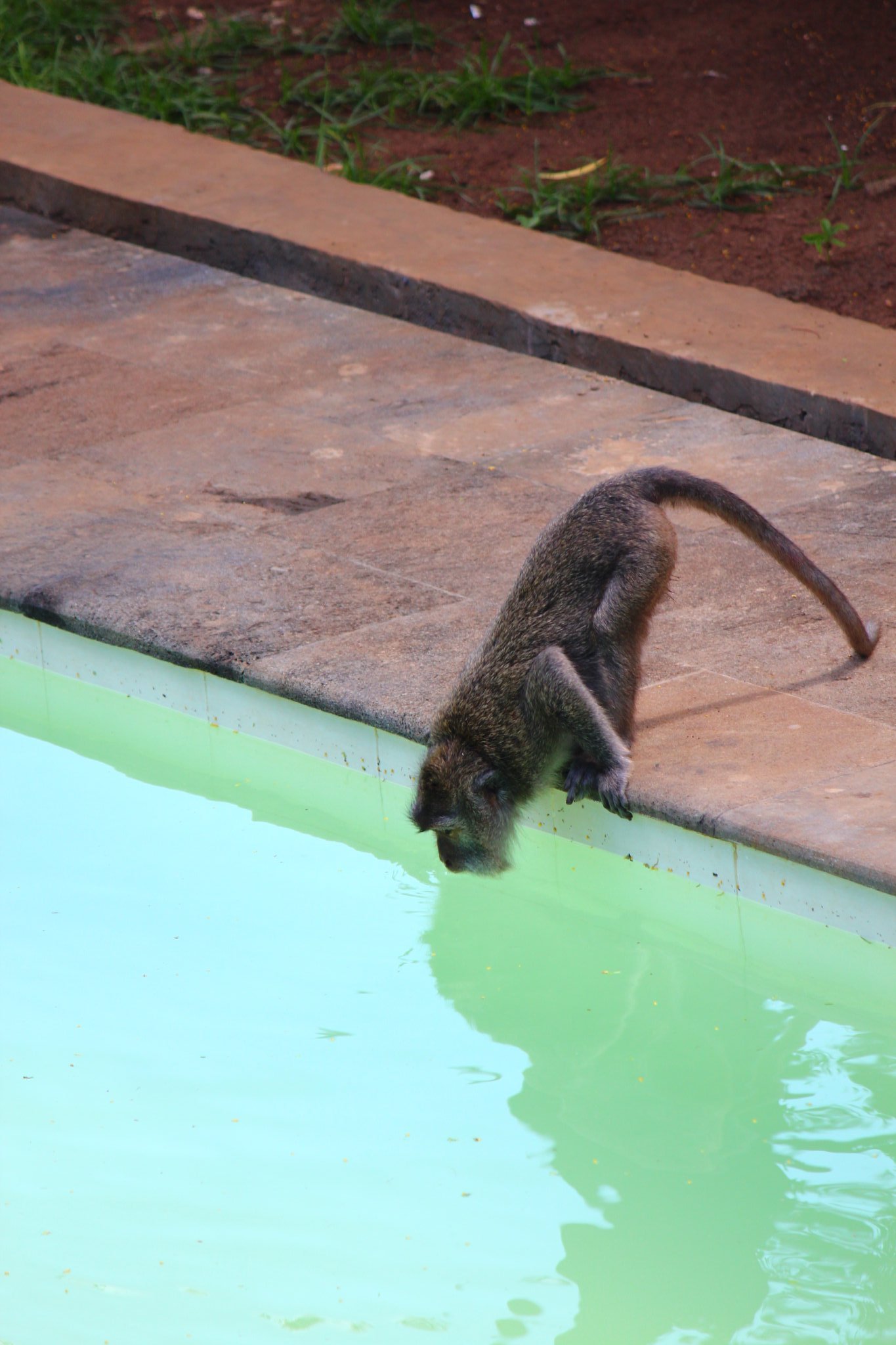 A bejárattól nem messze egy szép kis medence van egy aranyos kis szoborral. Hihetetlen, de a majmok nemcsak isznak belőle, hanem hűsítő fürdőt is vesznek. Olyan élvezettel tunkolják egymást a vízbe, ugrálnak ki-be, mint a gyerekek a strandon. Uluwatu makákói tudnak élni az biztos:)