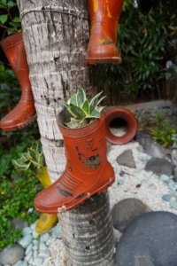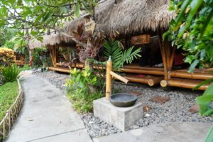 Bambusz kézmosók szinte mindenhol és a dekoráció egy része újrahasznosított tárgyakból készült.