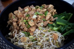Főzni nagyon szeretek, itt éppen az indonéz csirkés-gombás tésztalevest, mie ayam jamurt készítettem